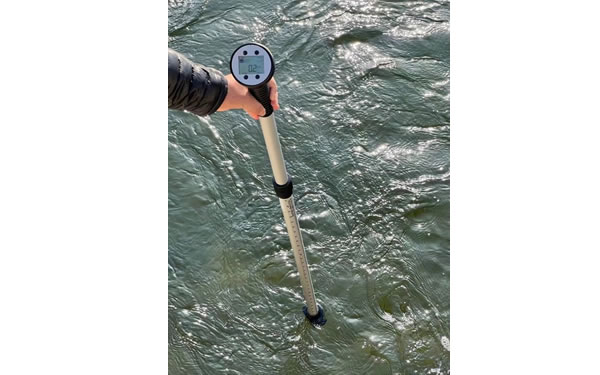 流速探頭可用于測量溝渠水流的平均流速。只要渦輪螺旋槳傳感器在水流中,計算機就會平均水的流速。每秒獲取一個讀數(shù),并顯示連續(xù)的平均水流速度。要獲得平均流速,把流速探頭慢慢地移過要測量的橫截面。一旦讀數(shù)穩(wěn)定,即得到橫截面的平均水流速度。這可以準(zhǔn)確地測量流速,它對出現(xiàn)在一直有波浪的整個水流橫截面的不同流速進行平均。平均水流速度可以按SAVE按鈕保存供以后查看。